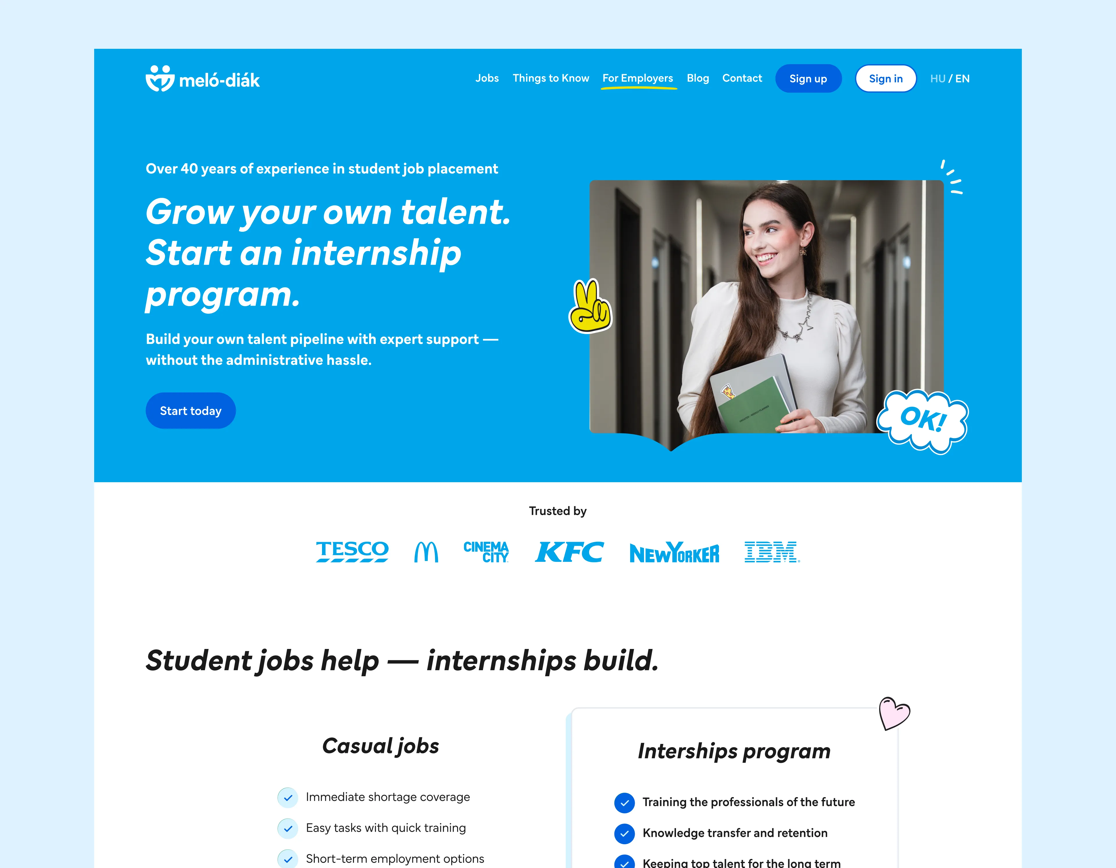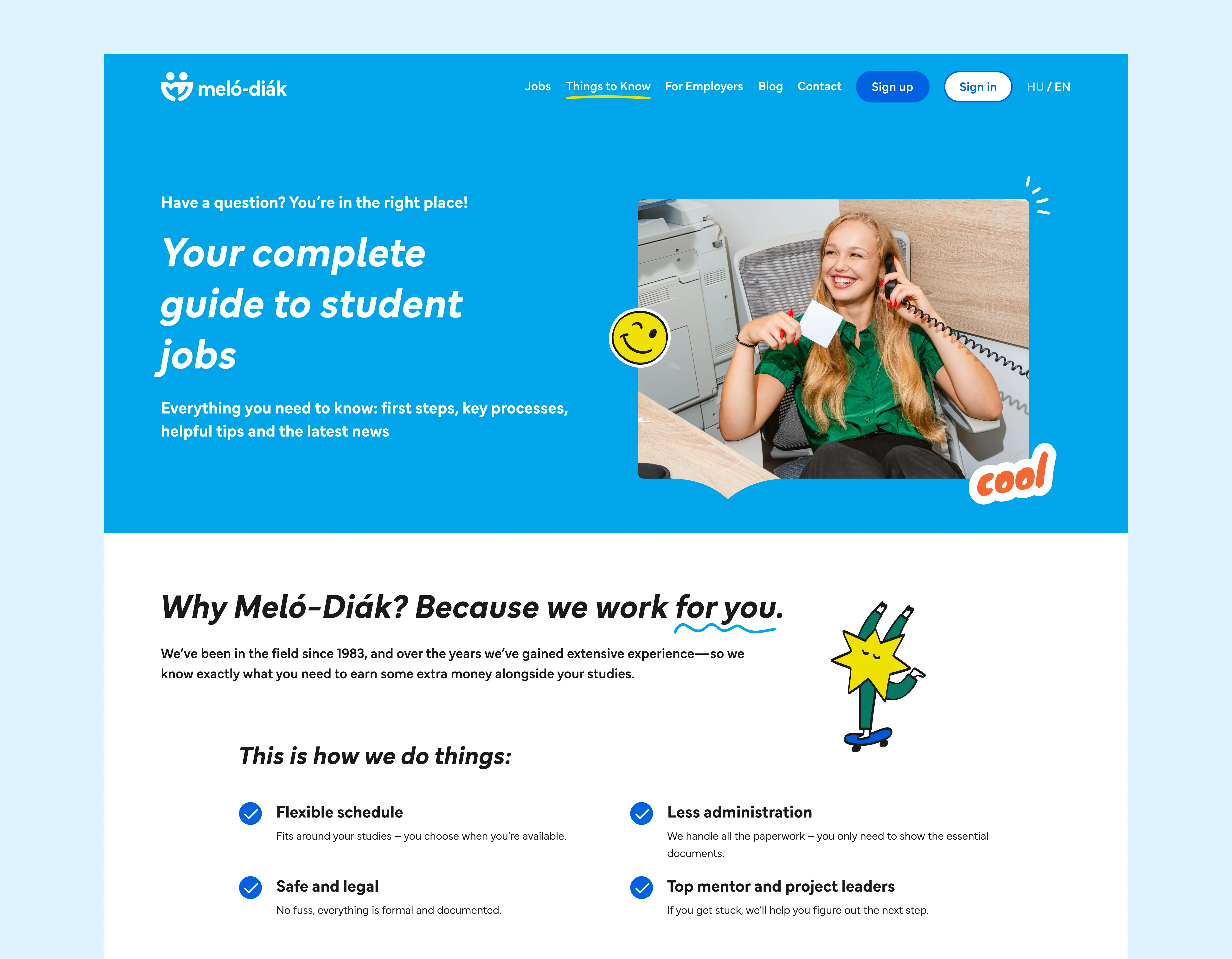 With the new pages (just like with the entire redesign), Meló-Diák is ready to strengthen its position as a leader among student job portals and attract new people to the board.